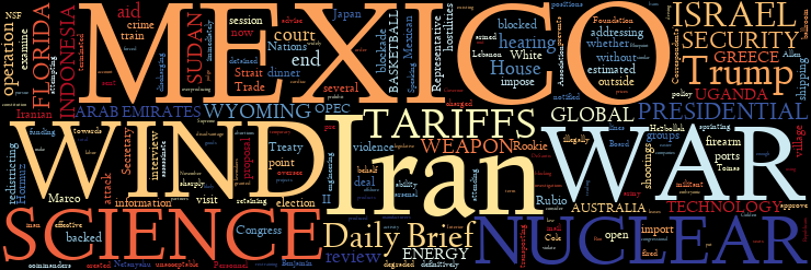 U.S., ISRAEL, IRAN WAR | U.S. GUN VIOLENCE | U.S. MILITARY | OKLAHOMA | EPSTEIN INVESTIGATIONS | U.S. IMMIGRATION | U.S. DRUG PRICING | U.S. AIRLINE INDUSTRY | GLOBAL ENERGY AND CLIMATE | RUSSIA | SOMALIA | KOREA | DENMARK | TECH INDUSTRY | FOOTBALL | WORLD CUP | TODAY IN HISTORY