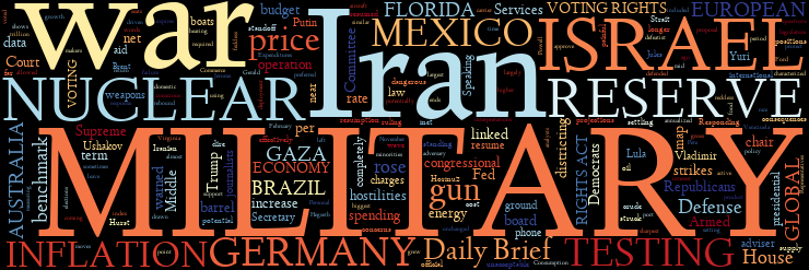 U.S., ISRAEL, IRAN WAR | U.S. SCIENCE AND TECHNOLOGY | U.S. PRESIDENTIAL SECURITY | U.S. TARIFFS | FLORIDA | U.S. WIND ENERGY | WYOMING | U.S. AND U.K. | GLOBAL NUCLEAR WEAPONS | UNITED ARAB EMIRATES | GREECE | INDONESIA | SOUTH SUDAN | MEXICO | MORE MEXICO | UGANDA | AUSTRALIA | BASKETBALL