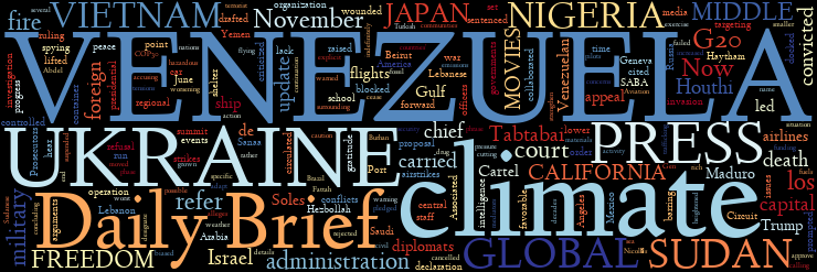 MIDDLE EAST | UKRAINE | U.S. PRESS FREEDOM | CALIFORNIA | U.S. AND VENEZUELA | MORE U.S. AND VENEZUELA | GLOBAL CLIMATE | SUDAN | VIETNAM | NIGERIA | JAPAN | G20 | WEEKEND MOVIES | TODAY IN HISTORY