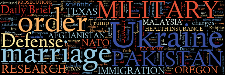 UKRAINE | U.S. PROSECUTIONS | U.S. HEALTH INSURANCE | U.S. MILITARY | U.S. RESEARCH | U.S. IMMIGRATION | U.S. ECONOMY | TEXAS | OREGON | NATO | E.U. MARRIAGE EQUALITY | AFGHANISTAN AND PAKISTAN | SUDAN | MALAYSIA | TODAY IN HISTORY