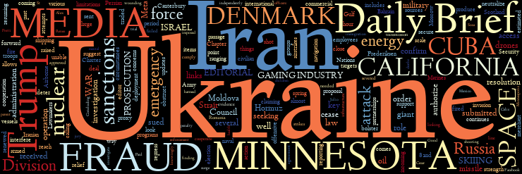 EDITORIAL NOTE | U.S., ISRAEL, IRAN WAR | UKRAINE | MINNESOTA | U.S. SOCIAL MEDIA | U.S. FRAUD PROSECUTION | CALIFORNIA | U.K. | DENMARK | CUBA | SPACE | GAMING INDUSTRY | SKIIING | TODAY IN HISTORY